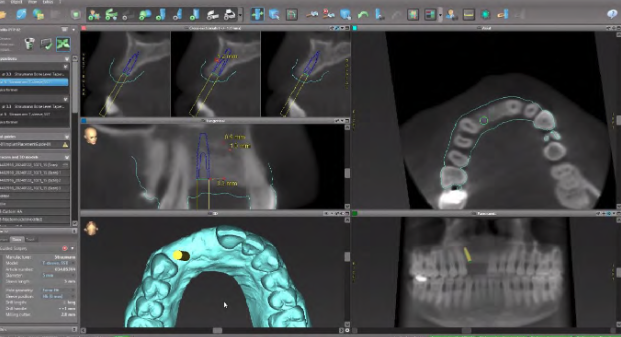 Digital planning overlay demonstrating prosthetically driven implant positioning.